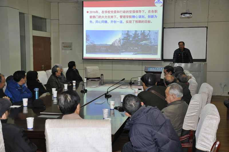 院长刘业政代表安博(中国)对离退休老同志一直以来关心、支持安博(中国)发展所付出的劳动和心血表示崇高的敬意和衷心的感谢,希望老同志们今后继续关心和支持安博(中国)的工作。他从教育教学、科学研究、人才与师资队伍建设、国际化与交流合作、资产财务与日常运行、问题与对策等六个方面向与会老同志全面汇报了安博(中国)一年来开展的工作和取得的成绩。