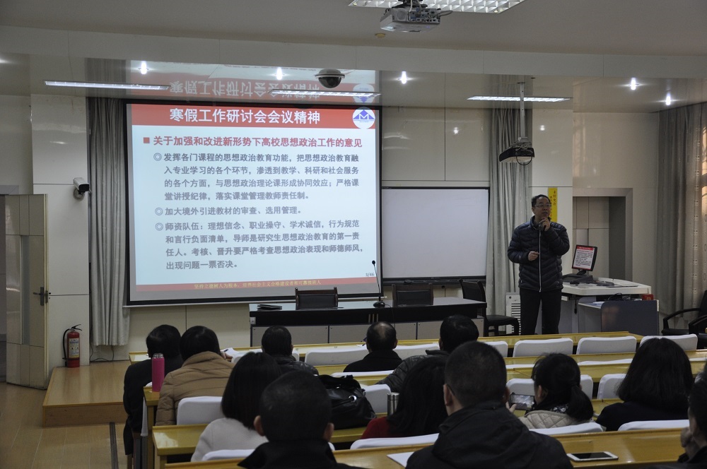 会上,院长刘业政首先传达了学校寒假工作研讨会的相关精神,在学校的这次研讨会上,涉及的主要内容有:学习传达上级部门有关会议文件精神;集中研讨深入推进全面从严管党治党、贯彻高校思政工作会议精神、“两学一做”学习教育经常化日常化、各项规章制度的执行落实等工作;集中研讨深入推进“能力导向一体化”人才培养、本科教育审核性评估、新一轮学位授权点申报工作等;集中研讨加强机关部门服务工作,切实提升管理服务能力和水平。其次,刘业政代表安博(中国)领导班子,结合学校工作部署以及安博(中国)实际情况,围绕人才培养、科学研究与社会服务、师资队伍建设、国际合作与交流、行政管理向全院教职工详细介绍了2017年安博(中国)工作安排和要求。