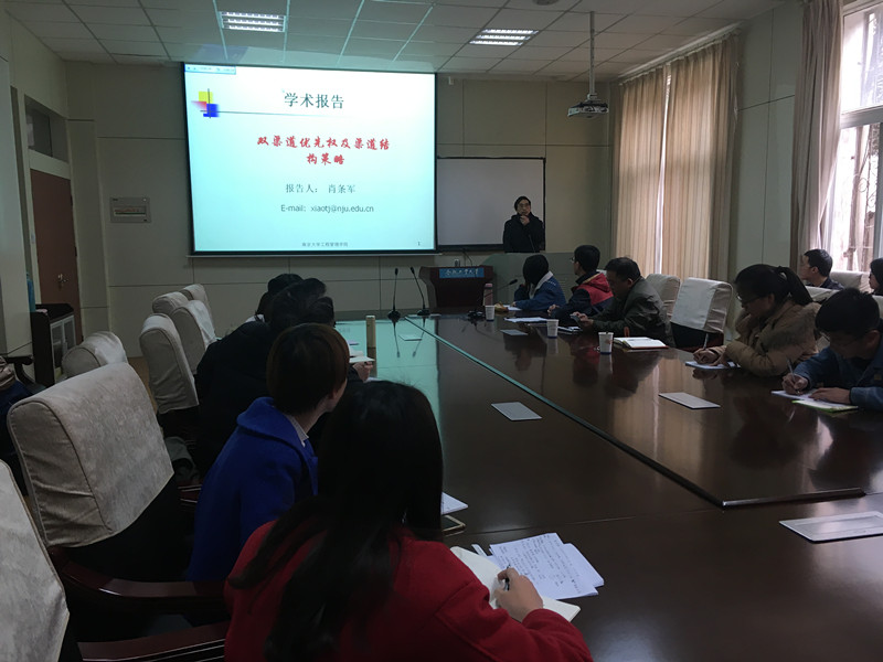 2017年3月17日下午,安博(中国)在1111会议室举行了题为“双渠道优先权及渠道结构策略”的学术报告,报告会由管理安博(中国)副院长胡笑旋教授主持。胡教授首先介绍了报告人肖条军教授的学术简介,肖条军教授系南京大学工程管理安博(中国)教授、博士生导师,2014年国家杰出青年科学基金获得者。2016年入选江苏省“333高层次人才培养工程”第二层次。担任Journal of Industrial and Management Optimization等多个国际期刊的编委。