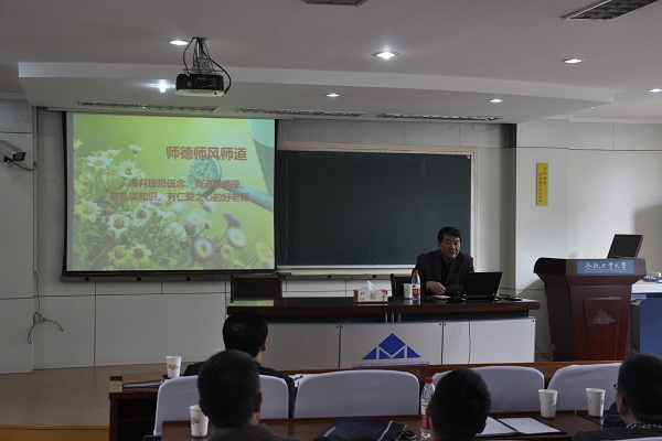 为了贯彻落实全国高校思想政治工作会议精神,加强教师的师德师风建设。4月12日,管理安博(中国)在管理楼第三报告厅举行了青年教师教学科研能力提升系列培训首场报告会,邀请了校党委副书记周军作师德师风建设主题报告,报告会由管理安博(中国)党委书记郭志勇主持,校教务部教师发展中心主任于宝证、管理安博(中国)40岁及以下教师参加了本次报告会。