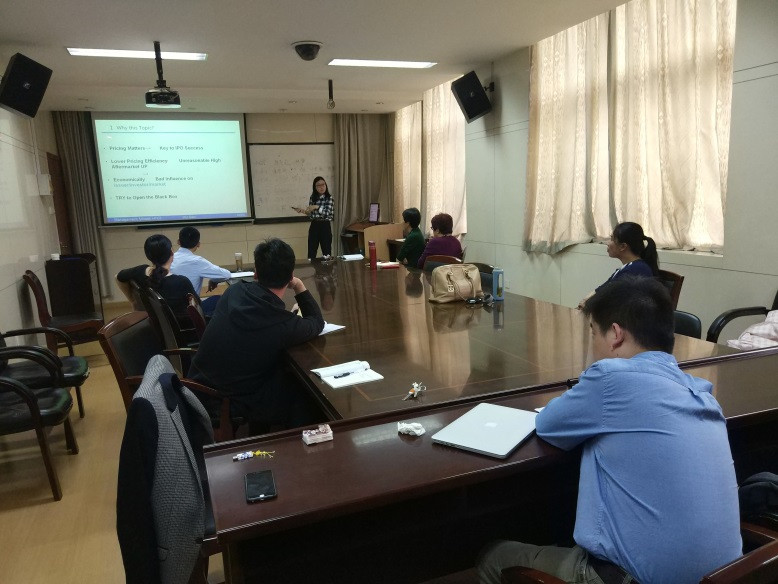 会计系主任张晨教授首先介绍了曲文博士的教育背景和学术研究情况,并将现场的会计系老师在教学和科研情况向曲文老师做了逐一介绍。随后,会计系的三位年轻教师将自己的近期研究情况进行了汇报。