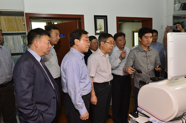 在参观智能微创诊疗装备系统时,陈宝生和信长星饶有兴趣地试戴了采用增强现实技术、可实时显示手术操作画面的微创手术眼镜。杨善林向陈宝生一行介绍,该套装备系统正式搭载于辽宁舰、微山湖号综合补给舰等多艘海军大型舰艇。