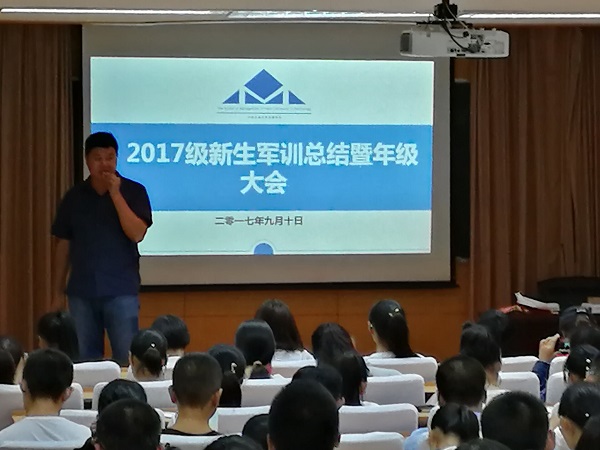 大会上,辅导员首先对全体新生圆满完成军训任务表示祝贺,共同回顾了十二天军训中的难忘和感动时刻,对军训中涌现出的先进事迹、优秀集体和优秀学员等提出了表扬和颁奖,同时布置了军训个人小结和以“我与军训”为主题的征文活动,旨在激励学生们将军训中培养、学习、思考、感悟的饱满精神和优良品质内化于心、外化于行。