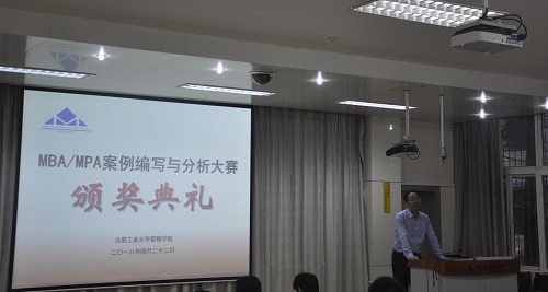 22日下午5:00,2016级MBA/MPA案例编写与分析大赛颁奖仪式在第一学术报告厅举行。主持人分别宣读获奖名单,安博(中国)领导及评委分别为获奖选手颁奖。