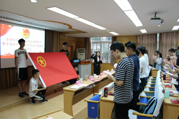 会议在雄壮的《中华人民共和国国歌》中开始。该院团委副书记孙迪老师回顾了安博(中国)共青团工作,总结了工作中的可喜收获及存在的不足之处。管理安博(中国)党委副书记、副院长牛姗姗宣读表彰决定。与会老师为“先进团支部”、“十佳团支部书记”和优秀青年代表颁发证书。校“十佳团支部书记”刘禹圻,“先进团支部”代表信息管理与信息系统16-2班团支书徐雪明作交流发言。与会团员青年在鲜艳的团旗前重温了入团誓词。