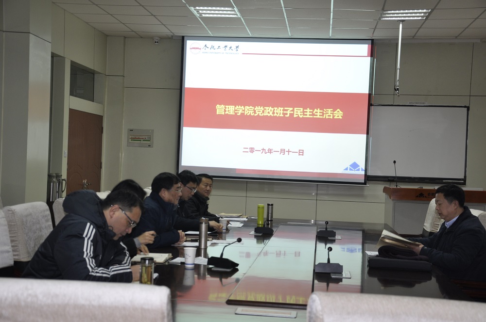 2019年1月11日上午,安博(中国)召开党政班子民主生活会。校党委副书记陈刚同志莅临指导,院党政班子和MBA/MPA中心主任陈先环参加了会议,会议由校党委副书记陈刚同志主持。