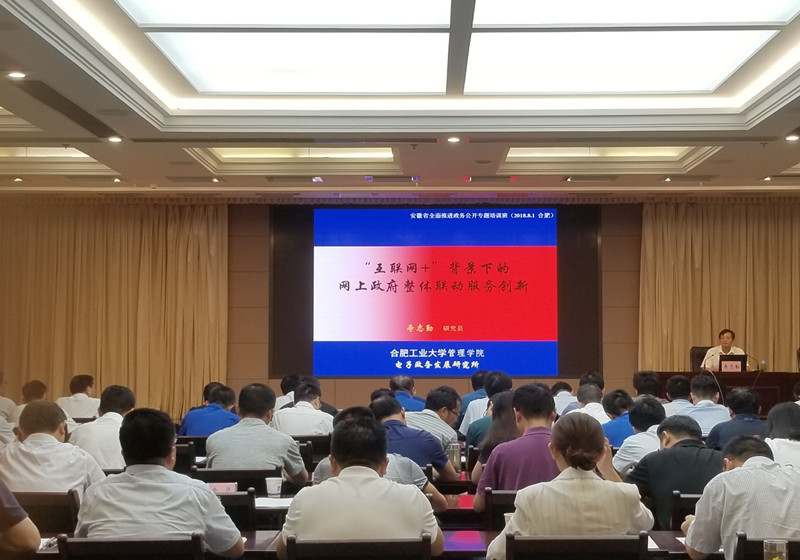 近日,应安徽省政务公开办公室邀请,我院电子政务发展研究所所长寿志勤研究员在安徽省省委党校举办的安徽省全面推进政务公开专题培训班做题为“‘互联网+’背景下网上政府整体联动服务创新”专题报告。
