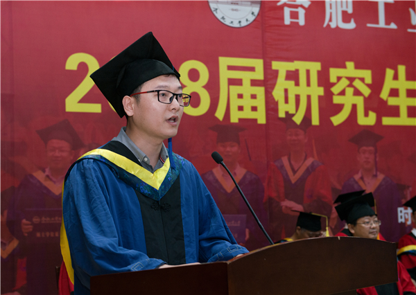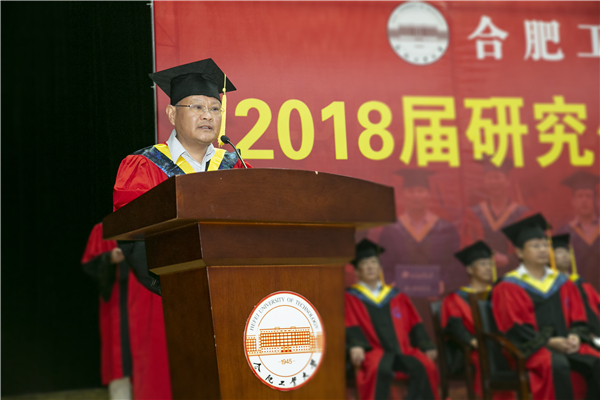 合肥工业大学党委常委、副校长季益洪在学位授予仪式上讲话。季校长首先代表学校向352名获得硕士学位的毕业生表示热烈的祝贺,向辛勤培育、支持同学们的老师、父母和家人致以衷心的感谢。