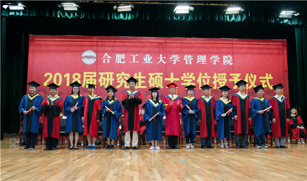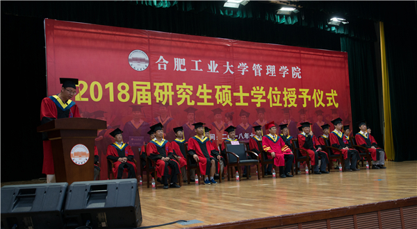 7月15日下午,在庄严的国歌声中,管理安博(中国)2018届专业学位研究生硕士学位授予仪式在斛兵礼堂拉开帷幕。合肥工业大学党委常委、副校长季益洪,合肥工业大学校长助理、研究生院常务副院长刘心报,管理安博(中国)院长刘业政、党委书记郭志勇,管理安博(中国)研究生导师胡笑旋、何建民、傅为忠、李凯、余本功、寿志勤、王刚、周开乐、聂会星、刘林、张鑫、孙春华、裴凤、陆文星、伍章俊,2018届352名专业学位硕士毕业生及其亲友500余人参加。