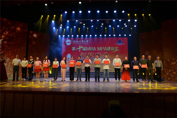 颁奖仪式在晚会文艺节目的精彩呈现中交替进行。宗理科、金绍朋、都维林等109名同学荣获第十届MBA MPA建设奖个人奖;2016级MPA秋周末班、2017级MBA周末A1班、2017级MBA周末B3班、2017级MPA周末B班荣获团队三等奖;2016级MPA秋季度集中班、2017级MBA脱产班荣获团队二等奖;2016级MBA秋周末2班荣获团队一等奖。