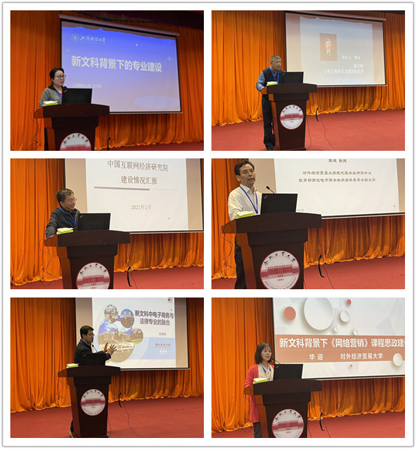 教指委副主任刘兰娟教授、覃征教授、孙宝文教授、陈进教授、教指委委员张荣刚教授和教指委副秘书长华迎教授分别进行了题为“新文科背景下的专业建设”、“新文科建设中电子商务专业的学科交叉”、“教学科研并重促进新文科建设”、“新文科背景下金融科技类课程改革创新”、“新文科中电子商务与法律专业融合”、“新文科背景下《网络营销》课程思政建设”的报告。随后,电商教指委认证工作组组长刘兰娟副主任对电子商务类国家级一流专业认证标准研制方面的工作进行了分享。全体委员围绕以上议题进行讨论交流。