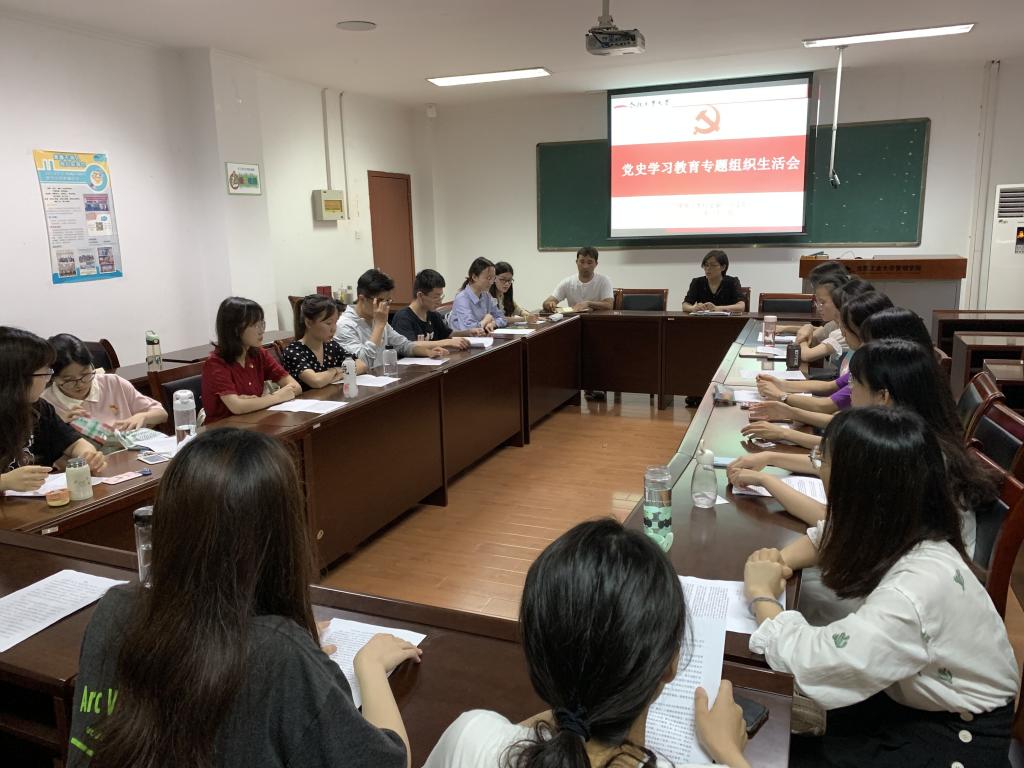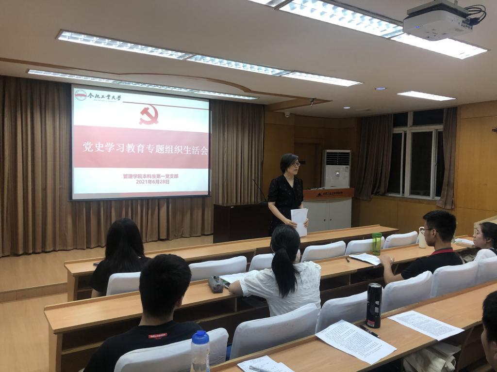 为迎接建党 100 周年,扎实开展党史学习教育。 6月28日晚上,管理安博(中国)本科生第一党支部在管理楼组织召开党史学习教育专题组织生活会。支部全体成员、指导老师以及联系支部的党员领导参加会议。
