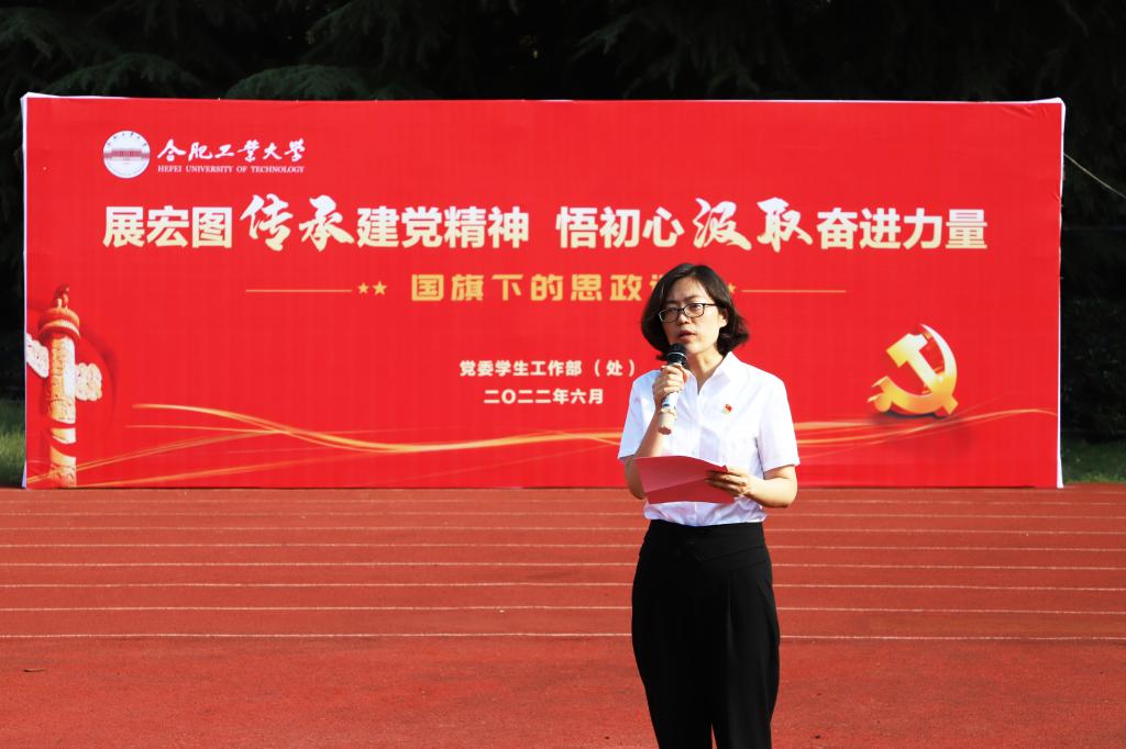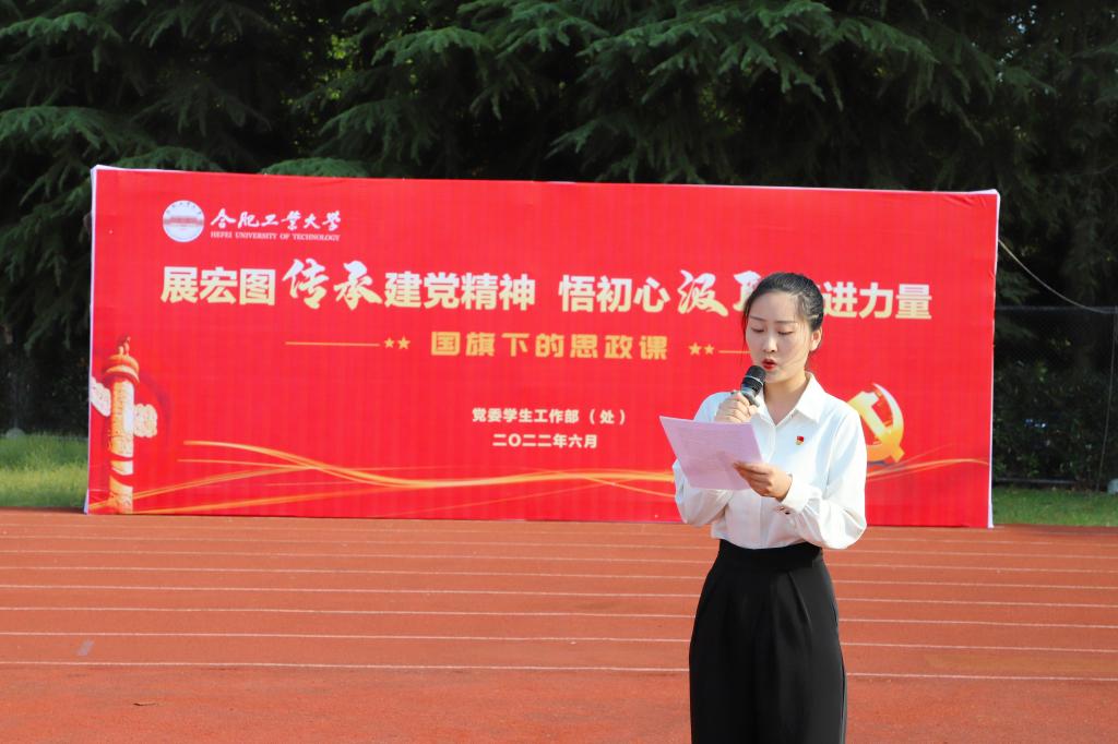 升旗仪式后,2022年十佳大学生党员、市场营销19-1班姬舒琪以《青春之宇宙,资以乐其无涯之生》为题作了国旗下的主题演讲,号召把自己的小我融入祖国的大我、人民的大我,在专业领域中发挥自己所长,将个人理想与国家命运紧密相连,勇担重任,向祖国作出“请党放心,强国有我”的郑重承诺,为实现中华民族伟大复兴的中国梦贡献青春才智,在党和人民最需要的地方谱写青春华章!