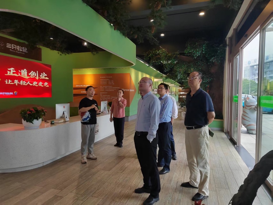2022年8月31日,管理安博(中国)副院长付超教授,副院长姜元春教授,电子商务系刘业政教授、裴军教授、孙见山副教授,物流管理系赵菊教授,工商管理系杜先进副教授一行前往三只松鼠有限公司开展人才培养校企合作。