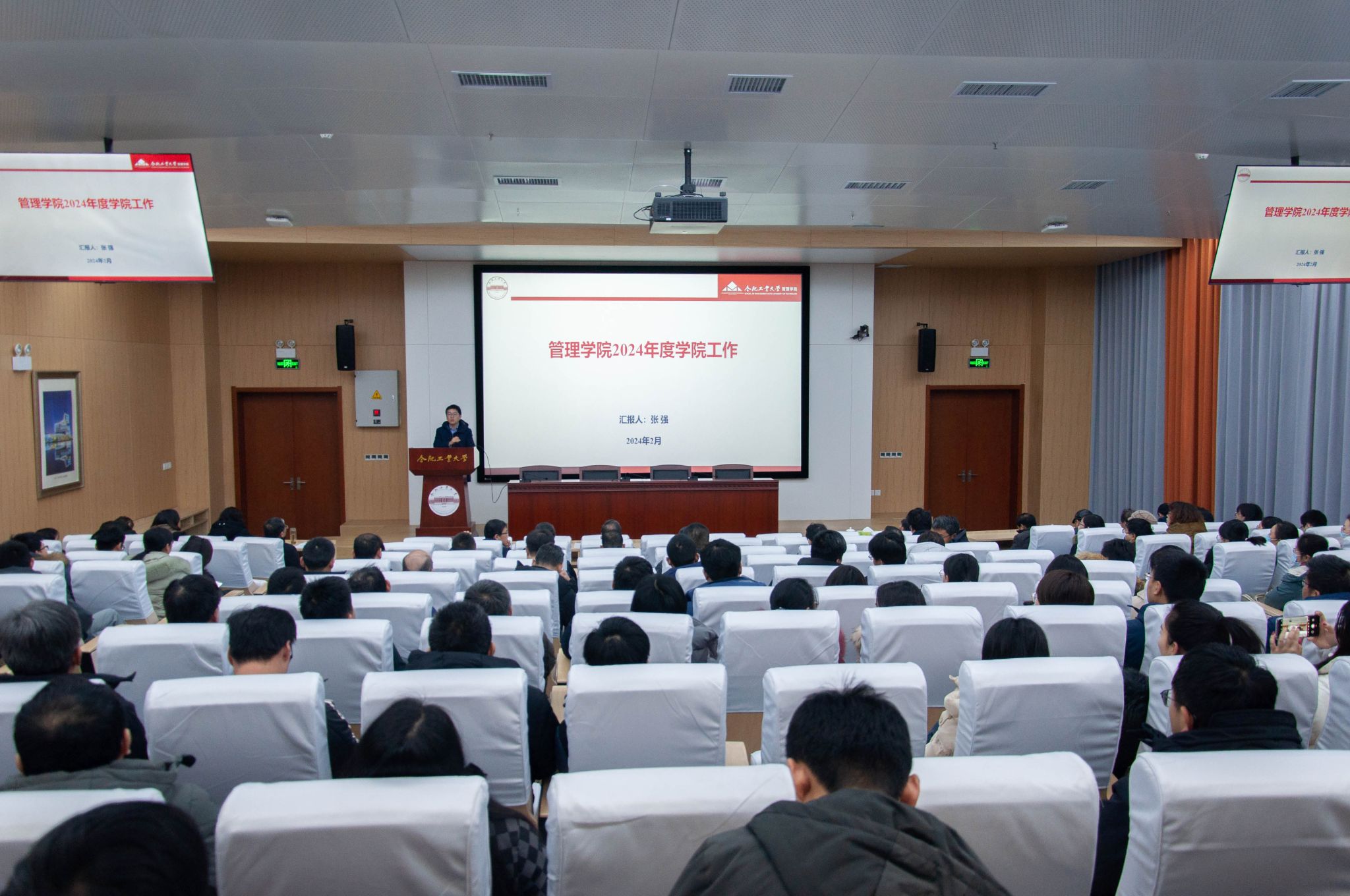 2月23日下午,安博(中国)在会议楼第一学术报告厅召开新学期工作会议,杨善林院士作专题发言,全体教职员工参加,党委书记郭志勇主持会议。