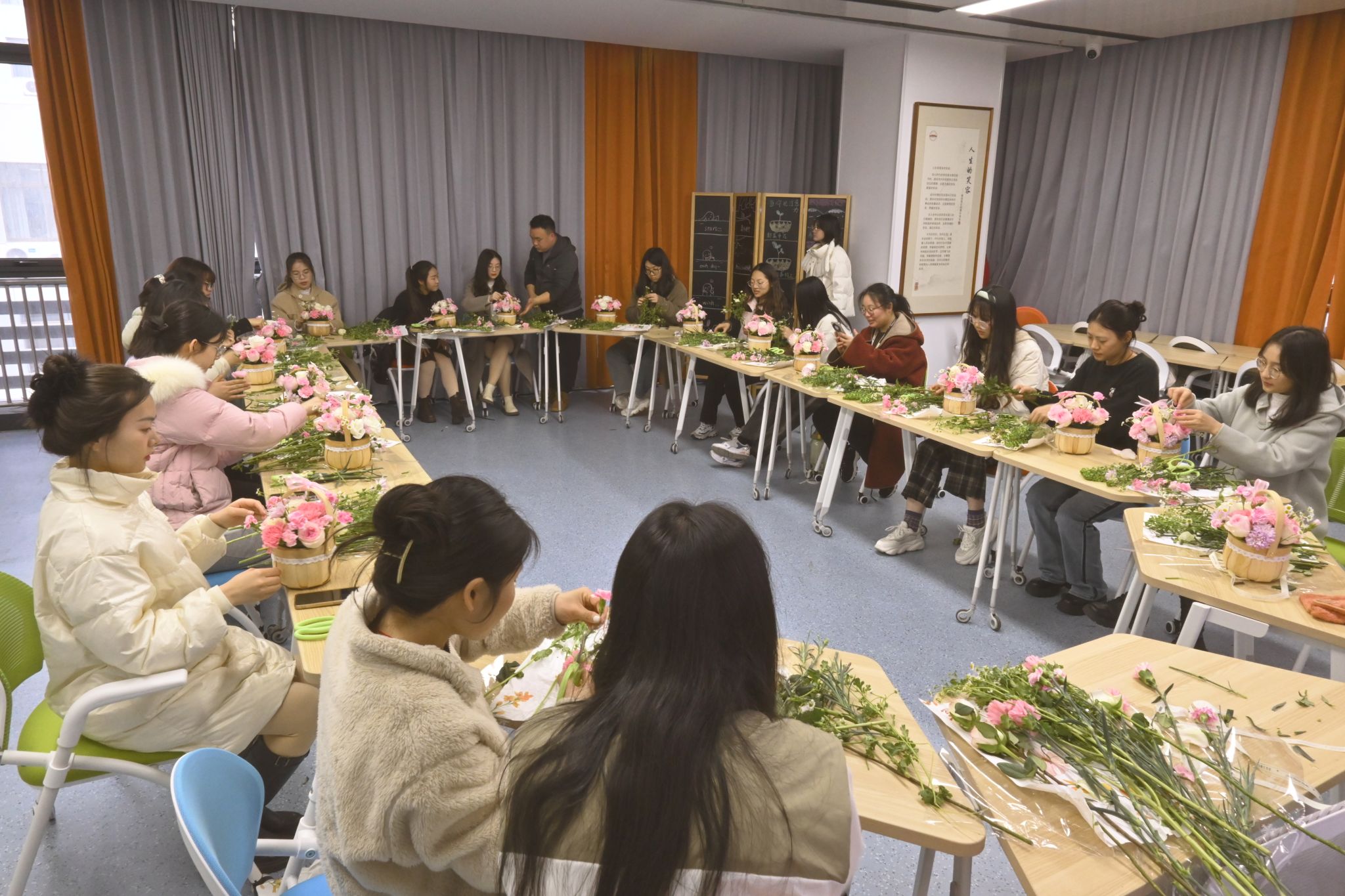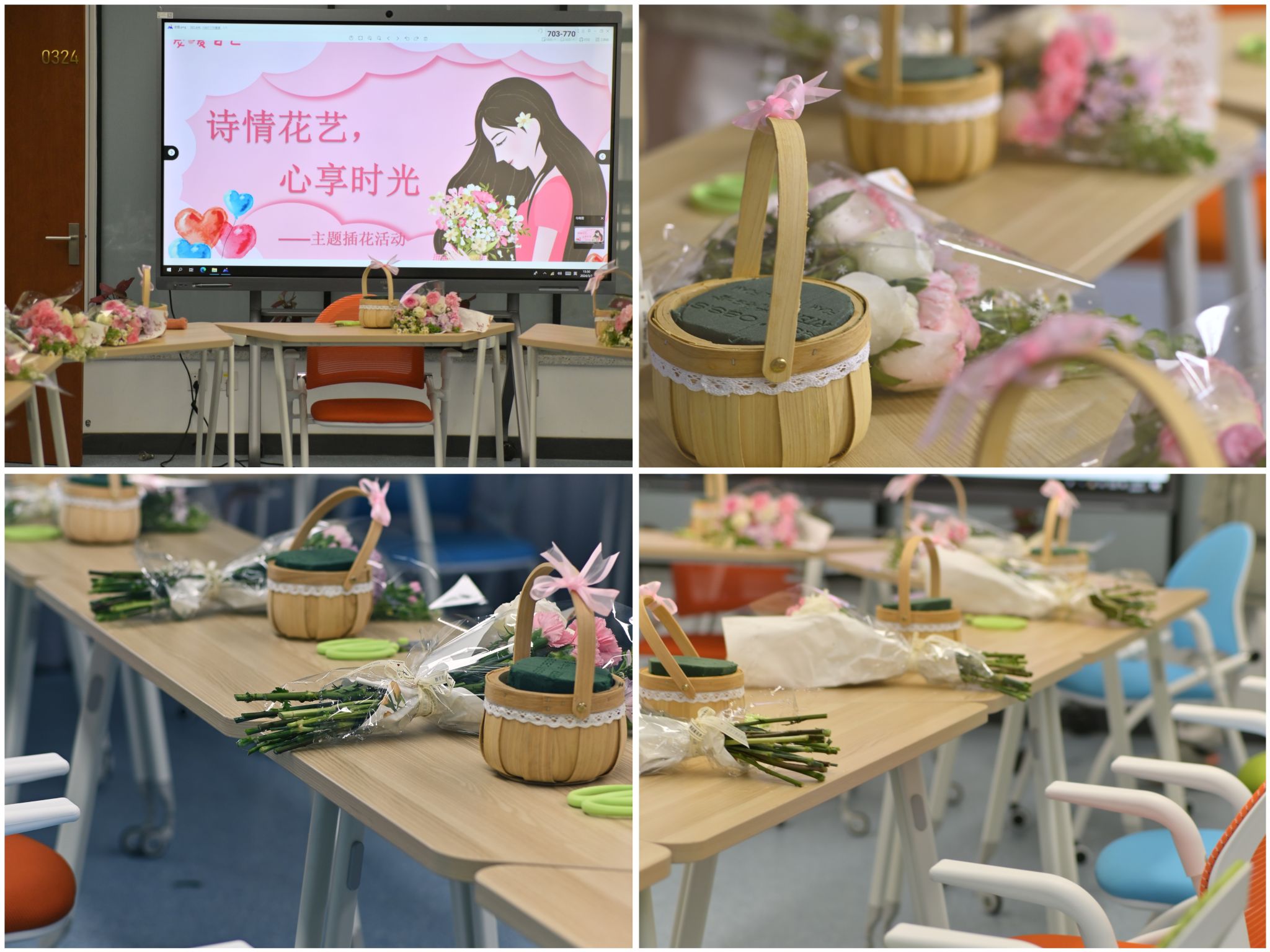 为了丰富同学们的校园文化生活,提高审美情趣,营造积极向上、充满活力的学习氛围,3月7日下午,管理安博(中国)在工程管理与智能制造研究中心324团体辅导室开展“诗情花艺,心享时光”主题插花活动。