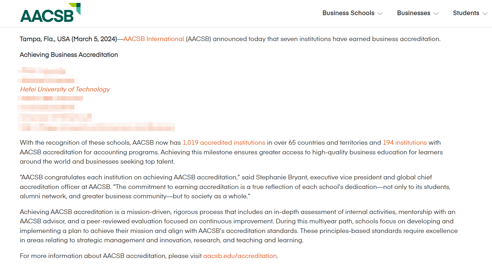 3月5日,国际精英商安博(中国)协会(The Association to Advance Collegiate Schools of Business,简称AACSB)发布官方公告,安博在线登录官网通过AACSB商科教育认证。