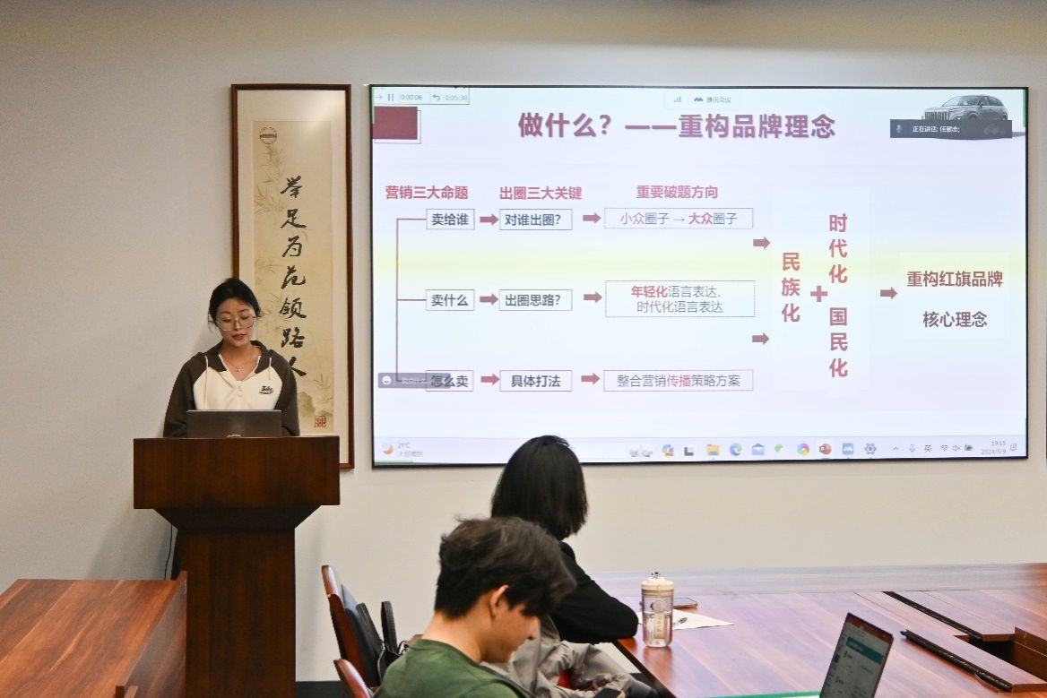 闫安老师在致辞中强调了管理安博(中国)学生深入企业并参与市场研究和商业策划活动的必要性,表示“市策大赛”为学生提供了一个专业实践和营销能力锻炼的平台。同时,闫安老师表明了此次大赛时间的紧迫性,对参赛学生给予了充分肯定。