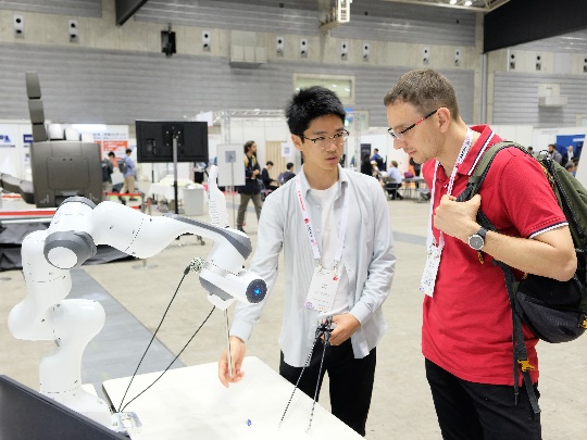 本次ICRA EXPO展览是ICRA会议首次推出的机器人展览环节,为研究者们提供现场演示机器人系统并进行讨论的机会,经申请遴选共有来自15个不同国家的81种机器人获得参展资格。合肥工业大学李霄剑研究员团队所展示的人机协同腹腔镜扶持机器人系统是一款面向微创手术的医疗机器人系统。该机器人能够在微创手术过程中代替辅助医生扶持腹腔镜,具备手术区域自主追踪、基于触力握把的柔顺拖动、创口点运动约束与自适应微调等创新功能,能够在手术过程中自主调整腔镜拍摄范围,为主刀医生提供持续稳定的手术视野。在该机器人展示过程中,百余位全球各国的机器人领域专家学者参观并体验了机器人的运行效果,给予了高度评价。