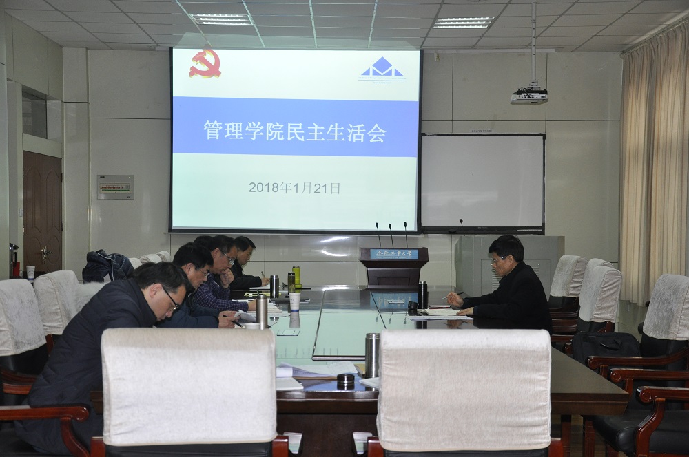 2018年1月21日上午,安博(中国)召开领导班子民主生活会。校党委常委、副校长季益洪同志莅临指导,院领导班子全体成员和MBA/MPA中心主任陈先环参加了会议,会议由院党委书记郭志勇同志主持。