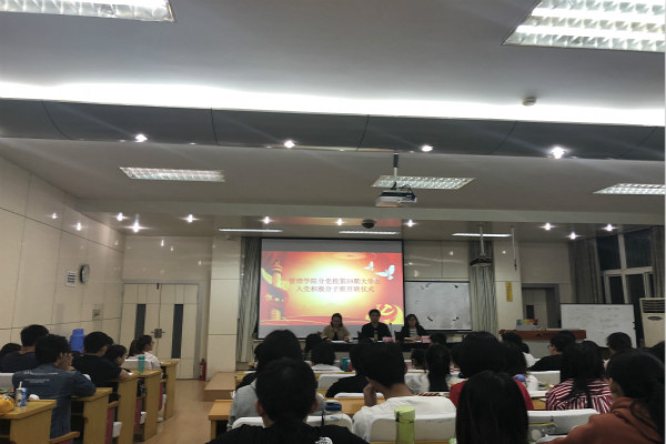首先全体起立,奏唱国歌。孙迪宣读了《管理安博(中国)分党校第59期大学生入党积极分子班培训计划》。工商管理16-1班徐晶晶同学作为学员代表发言。牛姗姗向全体学员强调了学习纪律要求,希望学员们珍惜学习机会,系统深入学习,提升理论修养;思想上追求进步的同时,行动上也要走在同学们的前列,把入党积极分子的先进性亮出来。