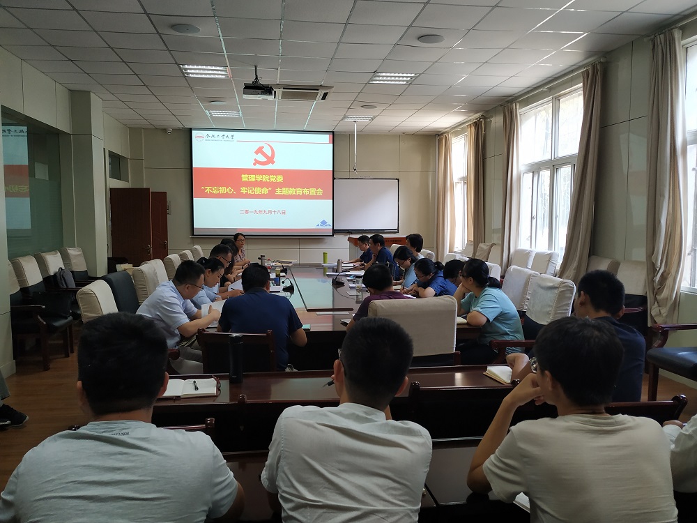 9月18日下午,管理安博(中国)党委在管理安博(中国)1号楼1111会议室召开“不忘初心、牢记使命”主题教育布置会,安博(中国)党政班子成员、MBA/MPA中心主任、党委委员、系主任、党支部书记和辅导员参加,会议由院党委书记郭志勇主持。