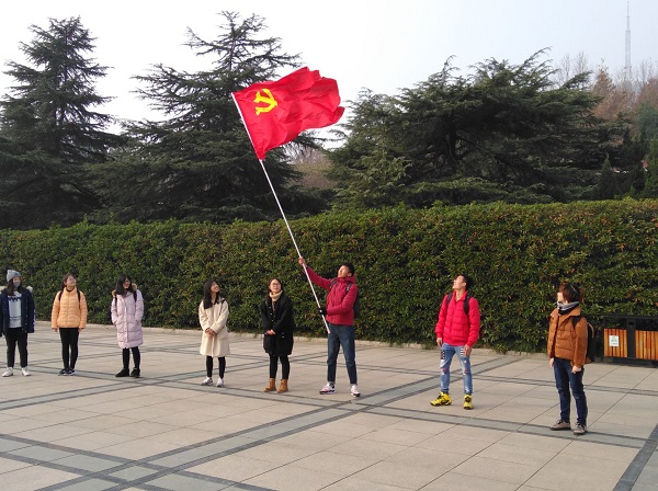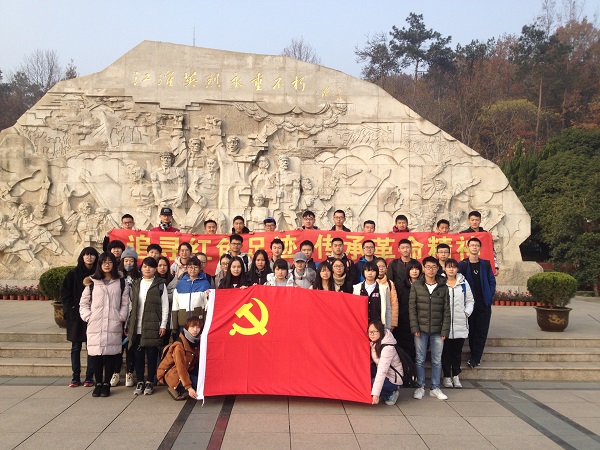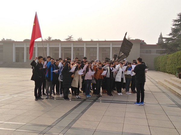 早上九点到达大蜀山烈士陵园后,全体师生在烈士纪念碑前默哀三分钟,用这种方式表达对先烈哀思,随后向革命烈士献花表达敬意,在负责人的带领下全体成员面向烈士纪念碑分别进行庄严宣誓和齐唱《歌唱祖国》,追忆过去、唱响未来,追寻红色足迹;随后,在悼念广场上进行了党旗传递活动,鲜红的党旗不断的在同学们手中接力传递,每个人在此刻深感自己的使命与责任厚重,最后全体成员参观安徽革命烈士事迹陈列馆,在星星之火、风展红旗、抗日烽火、地覆天翻、励精图治、走向复兴等六个展厅里重温革命先烈的壮烈事迹,深刻体会到革命前辈们艰苦奋斗,爱国救国的伟大精神,传承革命精神。