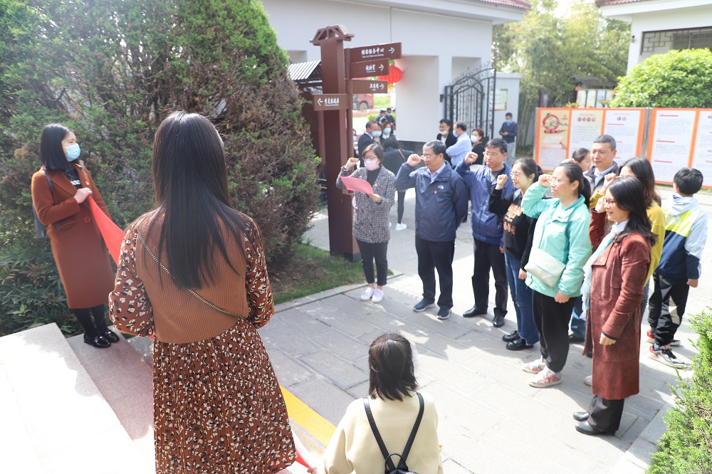 在参观李克农故居过程中,大家观看了李克农将军生平事迹陈列展,从一张张黑白的历史照片中了解了李克农将军传奇的一生,大家被将军在革命斗争中一次次出生入死、化险为夷的经历所感动,在将军故居前全体党员举行了重温入党誓词活动。