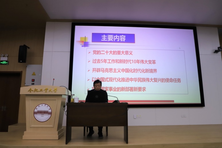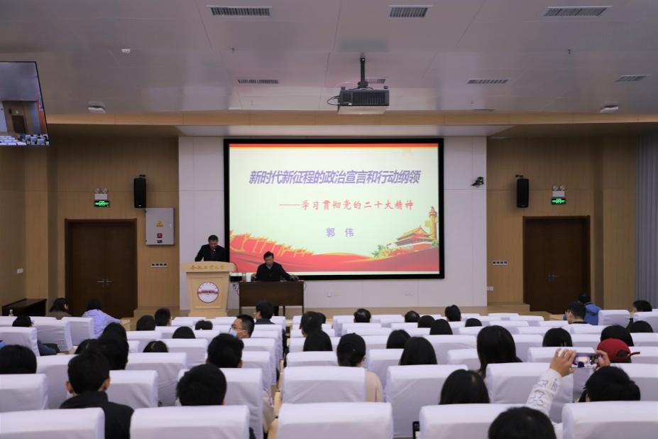 郭伟教授的报告结合自己学习党的二十大精神体会,紧紧围绕党的二十大重要意义,过去5年工作和新时代10年伟大变革,开辟马克思主义中国化时代化新境界,以中国式现代化推进中华民族伟大复兴的使命任务,以及党和国家事业的新部署新要求几个方面展开,报告主题鲜明、内容丰富,赢得参会师生的热烈好评。