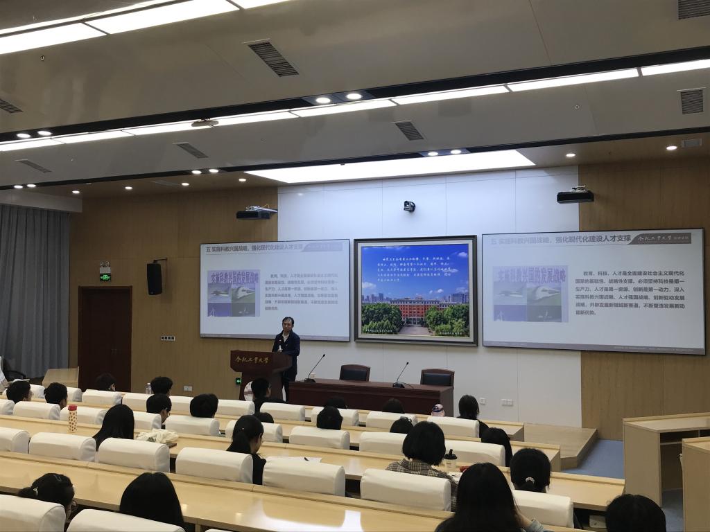 付超首先讲述了党的二十大主题,从“过去五年的工作和新时代十年的伟大变革、开辟马克思主义中国化时代化新境界、新时代新征程中国共产党的使命任务、加快构建新发展格局-着力推动高质量发展、实施科教兴国战略-强化现代化人才支撑”等五个方面论述了中国共产党带领全国人民取得的伟大成就和第二个百年征程的发展规划,引导学生自觉学习党的先进理论、将“小我”成长融入“大我”奋斗,以更加饱满的热情投入到学习中。