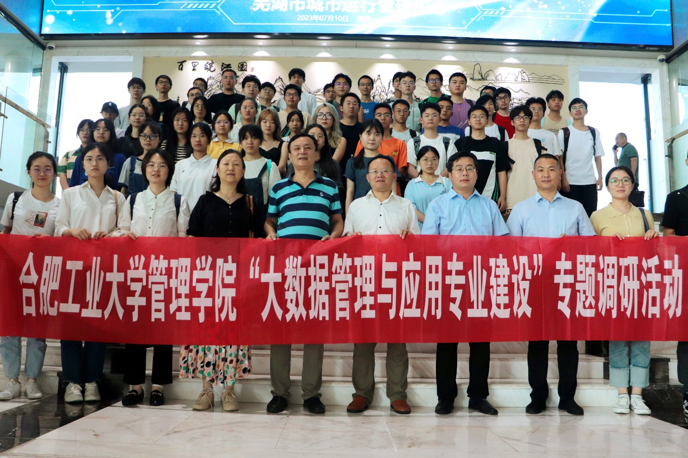7月10日,公共管理系党支部书记唐运舒等8名老师携2020级、2021级大数据管理与应用专业学生共60人走进芜湖,重点调研“东数西算”芜湖数据中心集群建设成果及芜湖市人才发展战略,为专业学科建设提供发展思路。芜湖市政府副秘书长孙彬亲临现场并做主题报告,芜湖市数据资源管理局党组书记、局长翁明等相关负责人热情接待并全程参与。