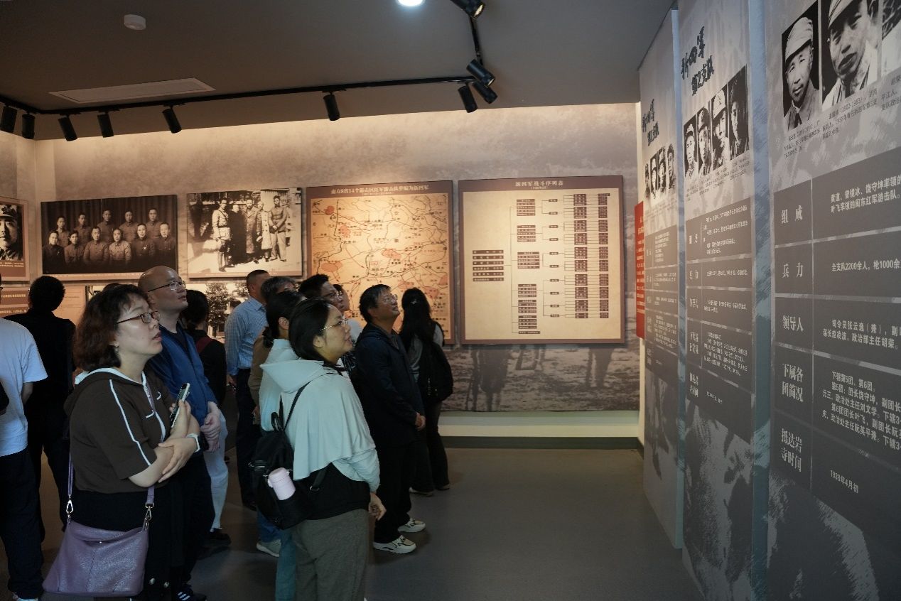 在纪念馆,师生们走进展厅,观看了陈列的珍贵历史照片、图表和文献资料,了解了新四军江北指挥部从1939年5月成立到所属部队发展壮大过程,体会到抗日战争胜利背后的艰辛和不易,学习了新四军将士不畏艰难困苦、不怕流血牺牲的伟大革命精神。