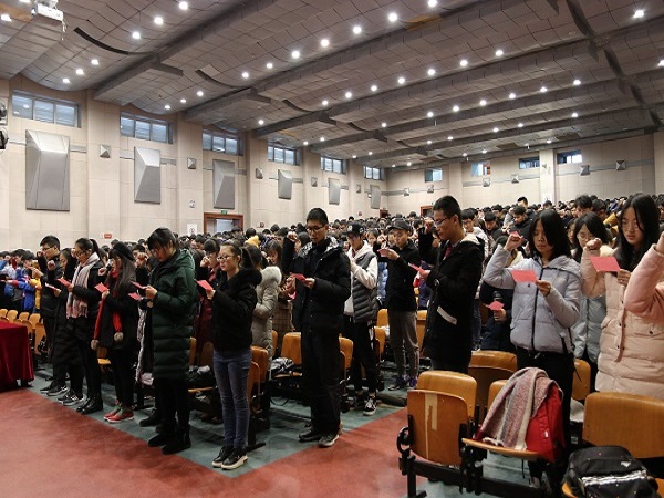 1月10日下午,管理安博(中国)考风考纪宣誓大会在斛兵礼堂举行,安博(中国)相关负责人、全体本科生辅导员和900余名本科生参加了活动。2017级辅导员田文祥解读了《合肥工业大学考试管理规定》《合肥工业大学学生违纪处分办法》《合肥工业大学授予普通高等教育学士学位工作办法》等文件。他结合监考、巡考中发现的问题,及时提醒全体学生遵规守纪;安博(中国)教学副院长李凯介绍了2016年和2017年因考试作弊被处分的典型案例,提出了“诚信与欺骗”思考,向同学们阐述一流学科建设中人才培养的特点,首要任务是要为社会培养诚实守信、德才兼备的优秀人才,考试作弊行为大大偏离了大学教育的根本宗旨,同时要求同学们端正考试态度,严格遵守考试纪律,有则改之,无则加勉。最后,由三位领誓同学上台带领全体学生宣誓,全体学生起立,进行了诚信考试的庄严宣誓,大会在同学们铿锵的宣誓声中结束。