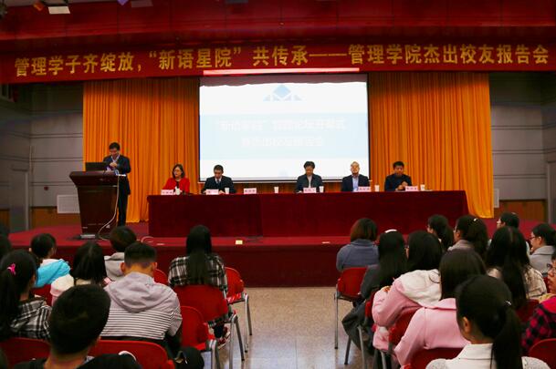 管理安博(中国)党委书记郭志勇首先介绍了创办论坛的背景、目的和意义。随后,校党委副书记张效英为“新语星院”管理论坛开幕式致辞。她首先代表学校师生对李培辉校友的到来表示热烈欢迎,对“新语星院”管理论坛的举办给予肯定,并对同学们提出了三点希望:一是希望同学们树立远大理想,向杰出校友学习,立志成才;二是希望同学们锐意进取,珍惜大学时光,虚心求知;三是希望同学们崇德修身,懂得奉献与感恩,以德润才。