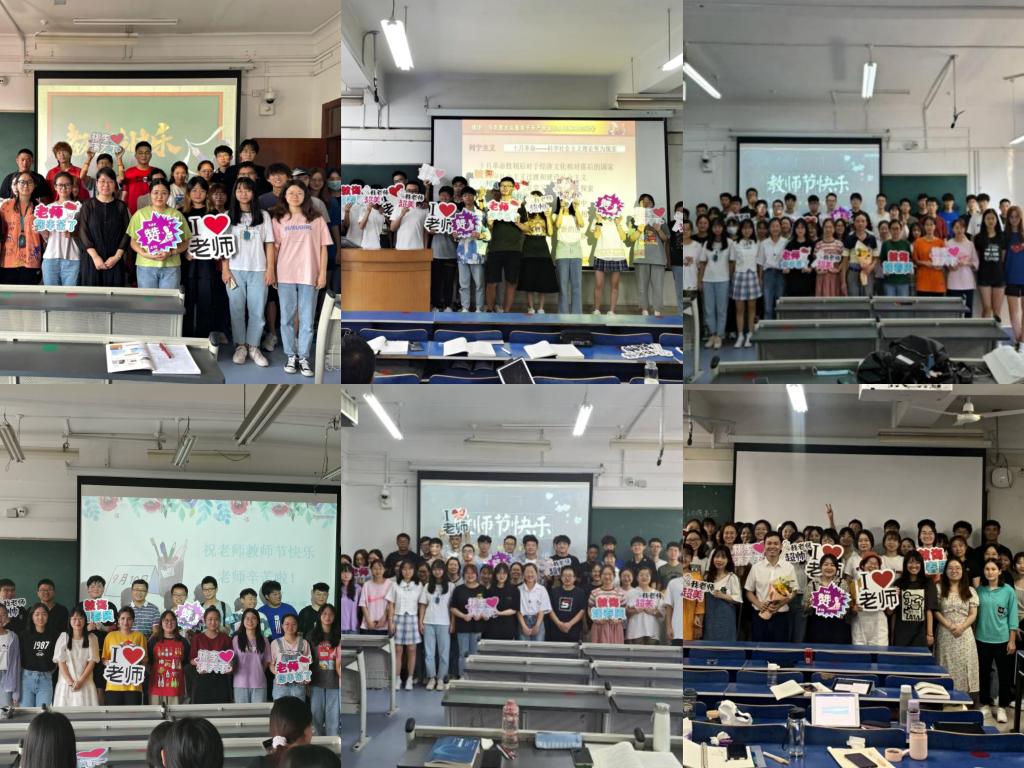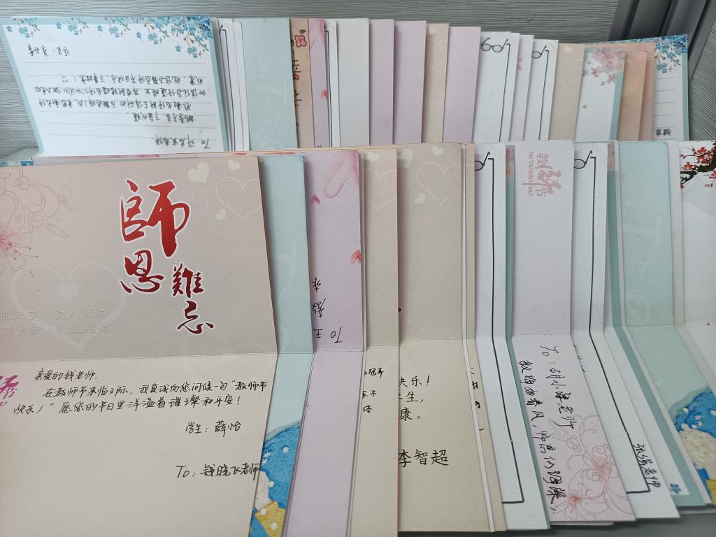 9月10日教师节当天,学生们提前来到教室准备板书和PPT,当任课老师走上讲台后,学生代表随即送上精心挑选的花束和全班同学精心制作的贺卡,以表达对老师的浓浓感激之情书。