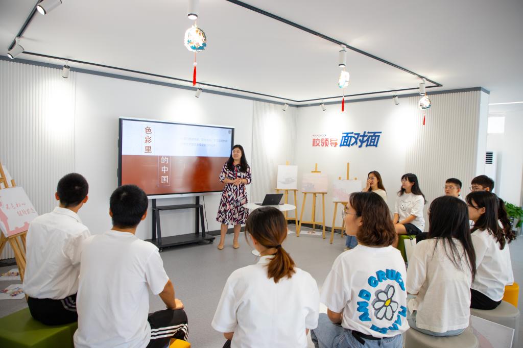 活动伊始,王宏蕾老师围绕色彩在历史艺术中的演进,以服饰、器物、建筑为例,展示色彩置于文化中的意义。其中红色因象征着吉祥、喜庆、热忱、奋进,尤为受到国人的喜爱和崇尚,尚红习俗的演变记载着中国人的心路历程,经过世代承启、沉淀、深化和扬弃,传统精髓逐渐嬗变为中国文化的底色,弥漫着浓得化不开的积极入世情结。活动开展过程中,恰逢校领导一行深入社区慰问师生,校党委书记余其俊饶有兴趣地和师生们进行了交流,他讲解了陶瓷烧窑的过程,分析了铁元素的变化带来的不同亮度的红色,拓展了知识的广度,提升了活动的层次和内涵。
