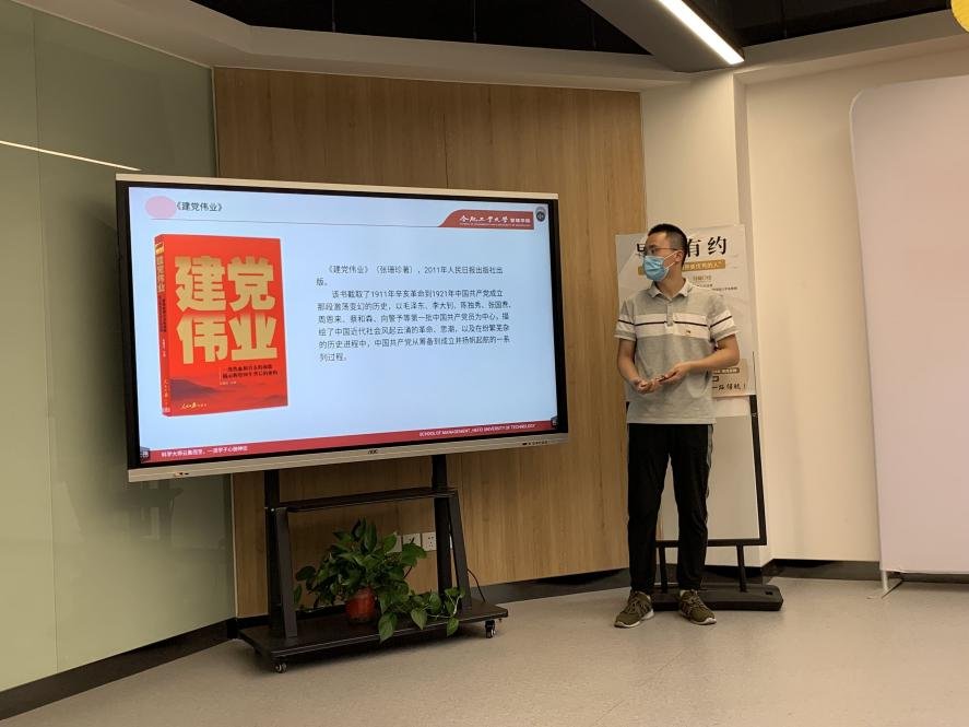 党支部书记吕世安首先介绍了《建党伟业》一书,表示该书较为深刻地描绘了中国近代社会风起云涌的革命、思潮,并带领大家概览书籍的主要内容。随后,支部依托历史时间线,王曦、张亚、左梦瑶、陈静、刘泉五名同学前后对辛亥革命、新文化运动、五四运动,中共一大等书中重大历史事件进行阅读演讲。