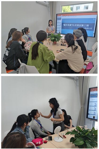 “懒起画蛾眉,弄妆梳洗迟。照花前后镜,花面交相映。”美丽的妆容能展现积极的生活态度和健康的审美情调,为了让大学生更加了解化妆礼仪,展现良好的精神风貌, 4月24日、5月3日,管理安博(中国)先后在7号楼学生社区开展妆容礼仪培训,让大家一起“感受美、体验美、运用美”。
