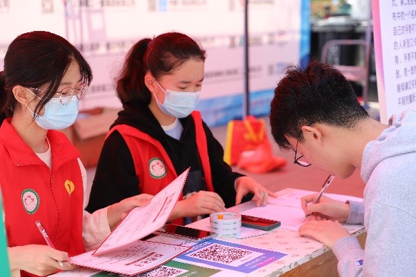 3月12日上午9点,“筑梦公益,共赴奇旅”雷锋月主题活动在春华路远志路交叉口正式启动。本次奇旅分为展示区、项目区、游戏区、公益区四站。在展示区,同学们领略春蚕社的志愿风采,感受志愿服务的文化精神,将对志愿活动的热情倾注在笔尖,在文化衫上签下自己的承诺。在项目区,同学们参与旧书回收、义卖,参加公益健康跑,用自己的点点心意为公益做出一份贡献。在游戏区,同学们体验“不一样的石头剪刀布”、“垃圾分类”、“手语学习”游戏,一枚枚印章、一份份礼品,装点三月的春天。在公益区,同学们了解着贵州省黔东南地区留守儿童现状,捐献出了一份份善款,在明信片上留下了一句句暖心话语,在公益体验营中挑选心仪的志愿项目,在志愿活动践行志愿精神。