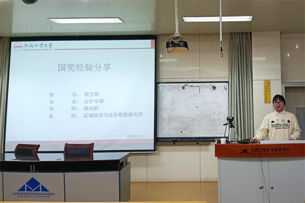 11月19日,管理安博(中国)于管理一号楼第一报告厅举办第95期“斛兵青年说”活动,活动邀请了王彦君、谢文艳等两位2022年研究生国家奖学金获得者向青年学生分享了课业学习、科研项目、学术论文等方面的心得体会。