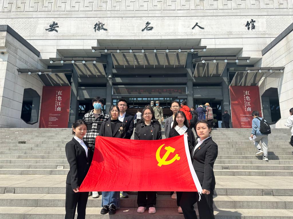 安徽名人馆是全国首个省籍历史名人专题纪念馆。展馆以史为纲,以时为序,从古至今由八大展厅组成。在讲解员的带领下,学员们从陈列28位安徽籍名人的巨型浮雕的序厅出发,了解名人们的光荣历史事迹,感受名人的智慧和不朽的奋斗精神。随后学员们依次参观了安徽省名人馆的八大展厅,深入了解安徽历史文化中对国家民族发展和安徽地方事业做出重大贡献的历史人物。参观完毕后,同学们在名人馆外进行了庄严的入党宣誓仪式。