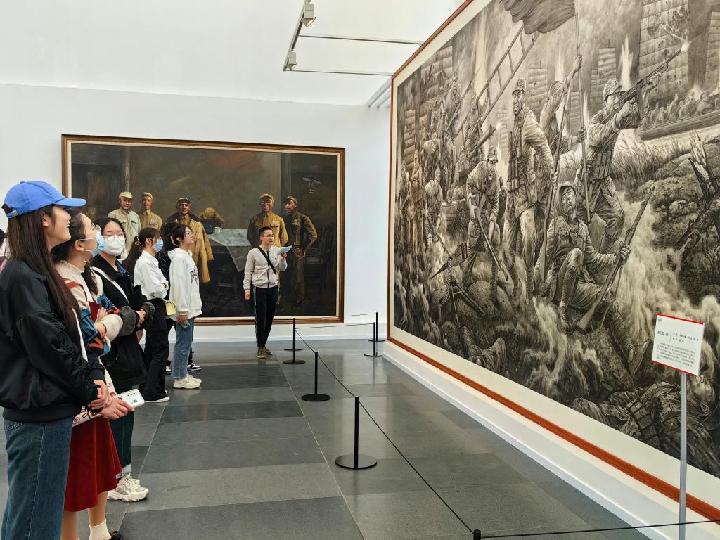 本次活动重点参观了“安徽省重大历史题材美术作品展”,作品以美术的形式记录和反映安徽波澜壮阔的历史,描绘出一幅幅壮美画卷,体现出艺术家呼应民族精神、呼应时代进程的精妙构思和家国情怀。在展厅中管理安博(中国)本科生第二党支部书记吕世安同学讲解了“渡江特等英雄”马毛姐的故事以及“渡江第一船”的来源,带领学生党员们身临其境感受党史故事,传承红色基因,赓续奋斗精神。