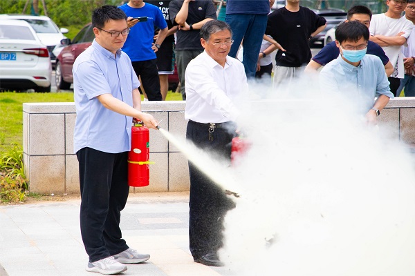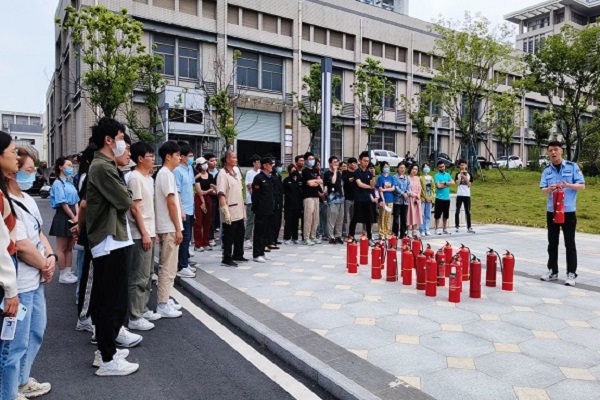 参与演练的师生、工程管理与智能制造研究中心物业管理人员、各楼层疏散引导员、校保卫处消防管理科工作人员迅速进入演习状态,在下达疏散演练命令后,疏散引导员按压火灾报警按钮发出报火警信号,指挥并督促本楼层人员进入楼梯间有序疏散。疏散过程中,所有人员有序快速撤离至空旷地带。在演练现场,消防人员详细介绍了如何正确使用灭火器等消防设备,让在场人员更加清晰地了解应对火灾突发事件的方法和注意事项,部分师生还进行了灭火器的实操训练,强化实战能力。