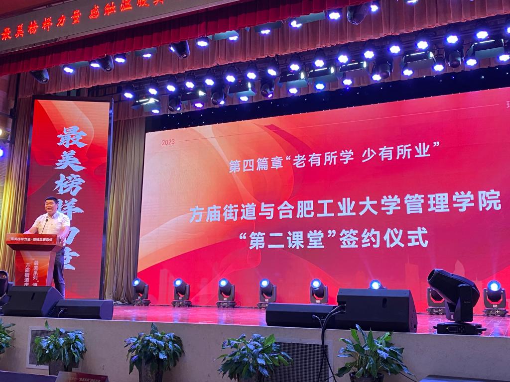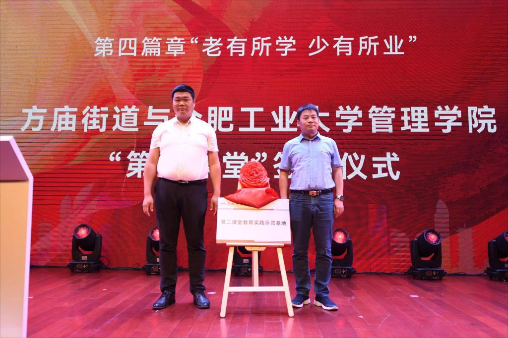 6月27日下午,管理安博(中国)与瑶海区方庙街道共建“第二课堂”教育实践示范基地签约揭牌仪式在合肥少儿艺术学校当涂路校区大礼堂举行。瑶海区委组织部、区委老干部局、区人力资源和社会保障局、方庙街道党群工作部、党群服务中心、社会事务部、社区建设部、工会、妇联、团工委相关负责人和合工大学生代表、社区志愿者代表等共计百余人参加。