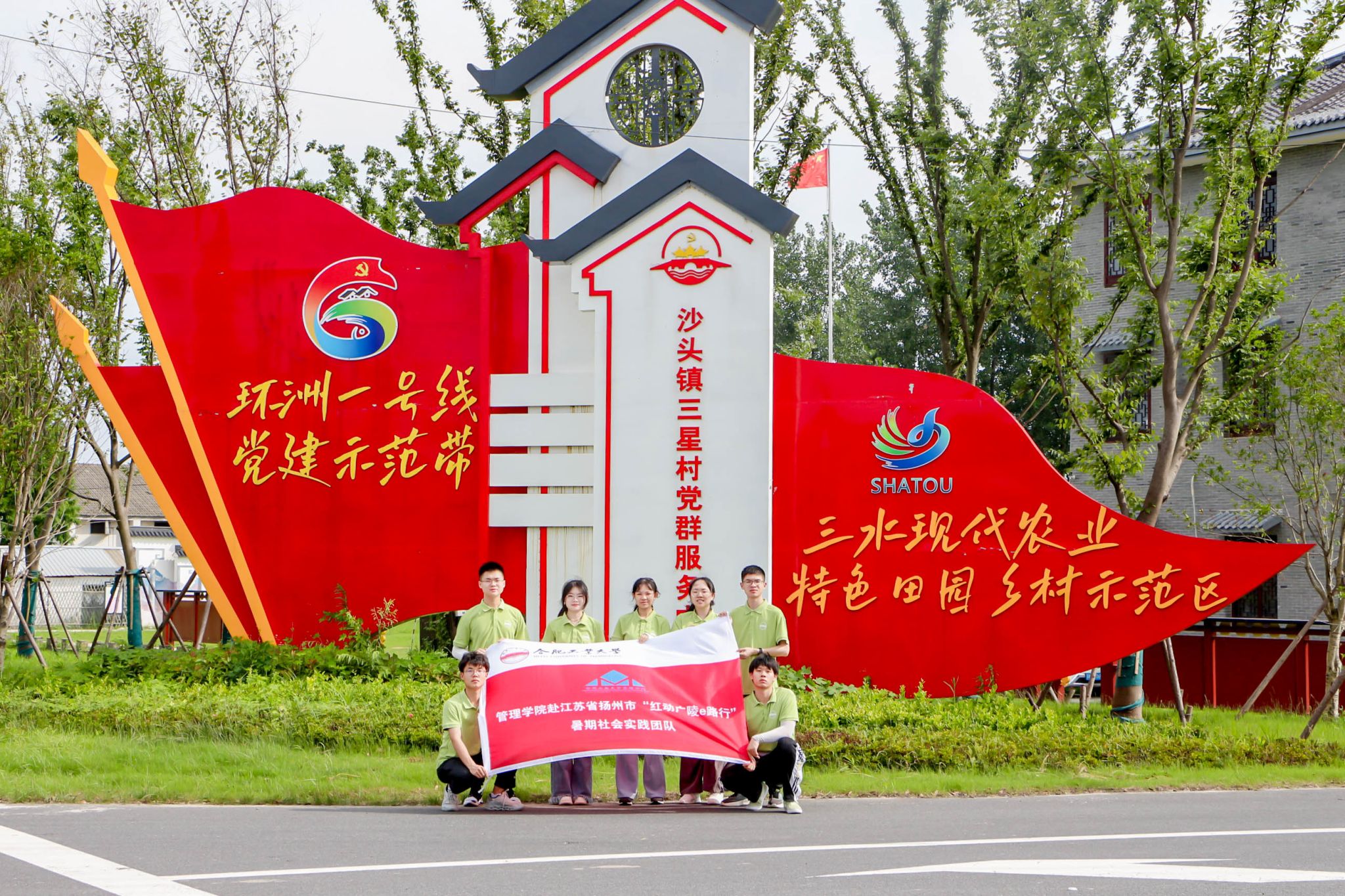 党建引领,探索党建引领下的乡村振兴之路。团队赴广陵团区委座谈交流,围绕“环洲一号线党建示范带”开展系列实践活动。先后参观“吴大观纪念馆”“胡笔江故居”“草垛子书屋”等红色革命遗址,学习党的光辉革命历史;在三星村进行实地调研,参观“家风家训教育馆”“党建主题公园”,并在沙头镇党群服务中心开展了“数据驱动乡村振兴”主题宣讲,向中小学生普及数智化在乡村振兴中的作用和意义。