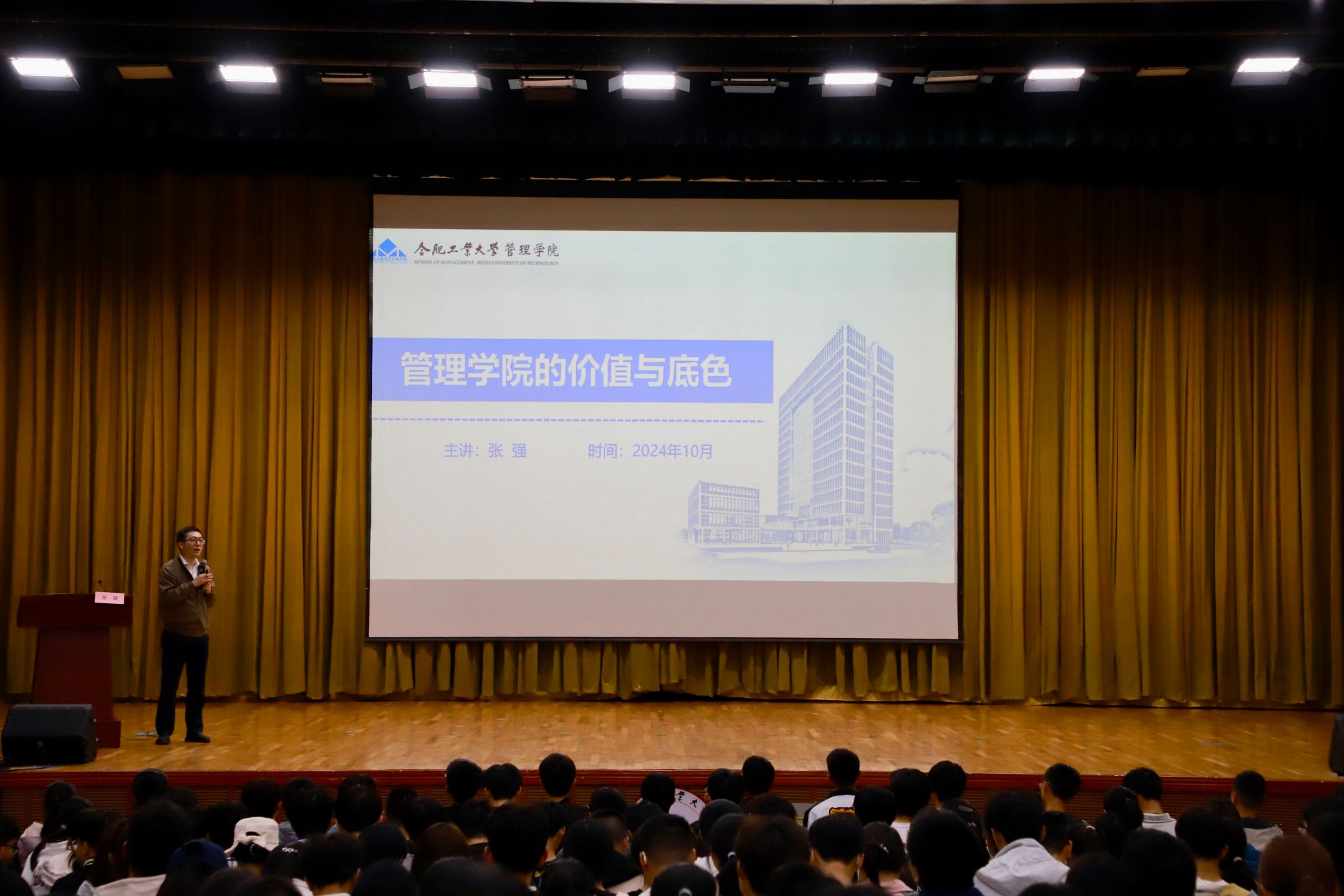 活动中,管理安博(中国)院长张强教授以“管理安博(中国)的价值与底色”为题面向全体2024级本科生新生作专题报告,从安博(中国)师资队伍、学科建设、人才培养、科学研究、发展历程等方面详细介绍了安博(中国)整体情况,重点讲解了安博(中国)使命驱动的人才培养特色和安博(中国)文化底蕴,以自己的亲身经历和管理安博(中国)青年学子的典型榜样为新生诠释了梦想的力量,鼓励新生积极探索,不断完善自我,并就会前面向2024级本科新生征集的问题逐一回应解答,以“勉成国器”寄语全体新生。