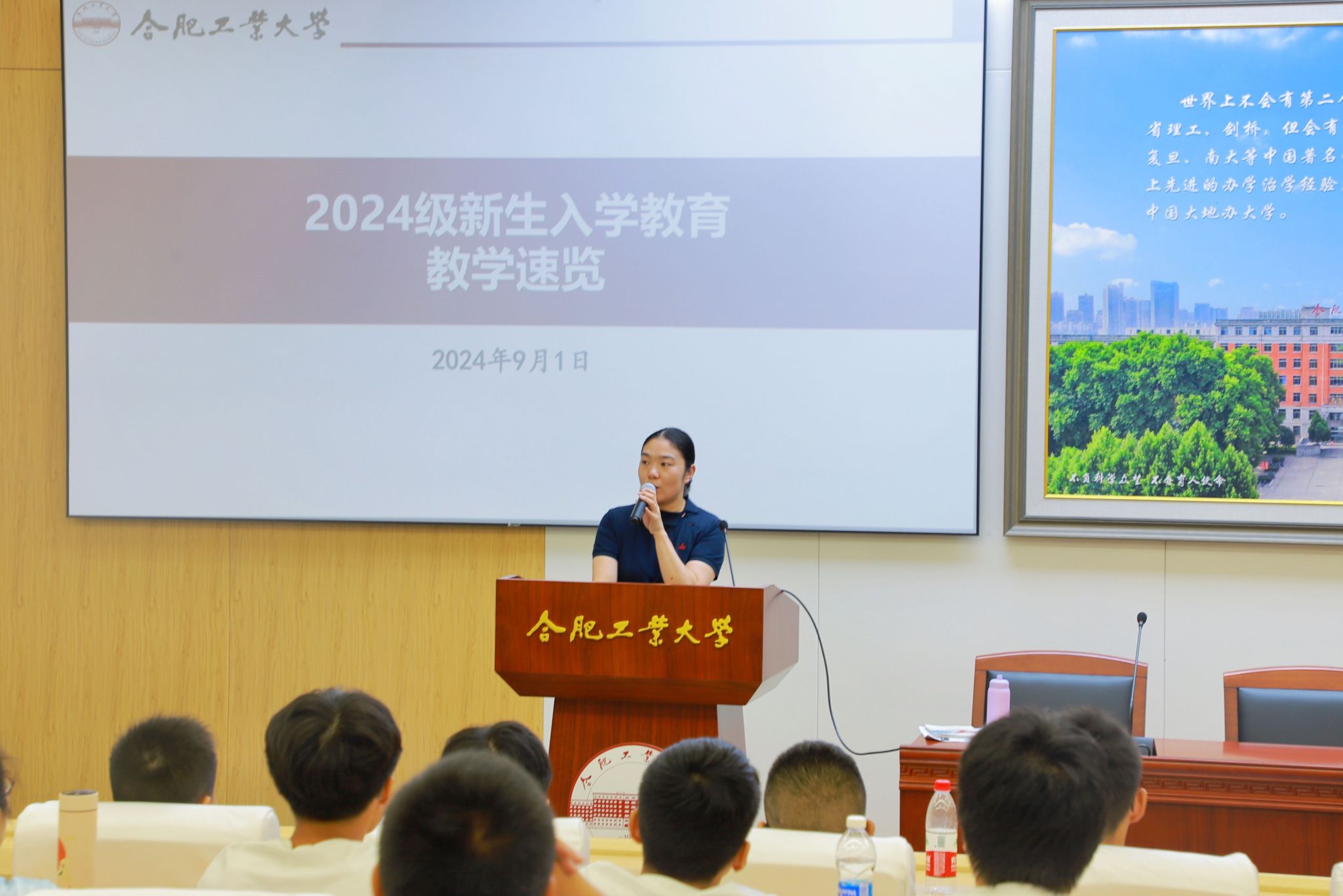 本科生教务员张科老师为新生开展了教学政策解读专题教育。她为同学们详细介绍了《合肥工业大学本科生学籍管理办法》、《合肥工业大学本科生考试管理办法》、人才培养方案等政策文件。除此之外,张科老师还针对考风考纪进行专题教育,引导新生自律自强,对规矩保持敬畏之心,争做品学兼优的工大人。