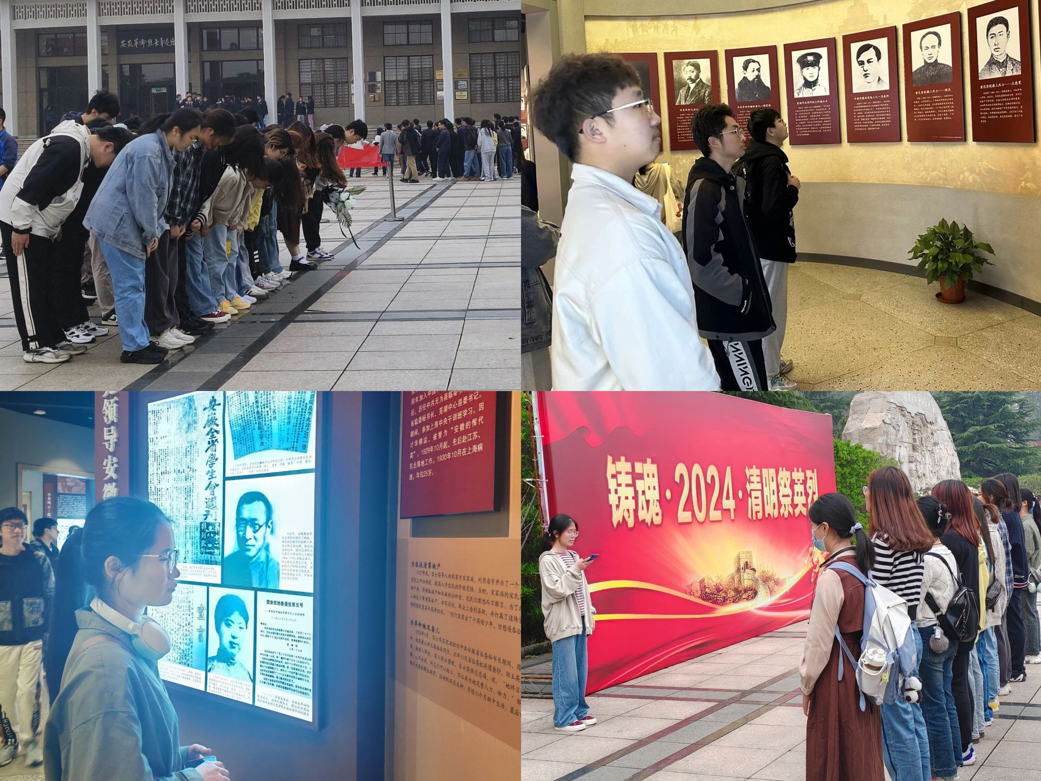 各团支部在准时到达烈士陵园后,迅速列队,在庄严肃穆地等待中,同学们深深感受了清明缅怀先烈的庄重和敬意。前来缅怀的队伍络绎不绝,追思的深情也如春蚕抽丝。随着宏伟的国歌再度响起,同学们高声齐唱,三度鞠躬,敬献花束,将敬意寄予春风,将怀念赋予青丝。信息管理与信息系统23-1团支部开展了以缅怀英烈为主题的发言,田浩钰、张竞凡等同学依次上前,从对大蜀山烈士陵园的介绍到全国烈士地追思与延伸,从陈延年到陈秋华,从缅怀追忆到努力奋进,同学们在纪念碑旁完成了更为深刻的学习与倡导。随后,同学们分散开来,自发进入安徽革命烈士事迹陈列馆,认真参观并了解了安徽籍及在安徽牺牲、或主要战斗经历在安徽的烈士在革命进程中的丰功伟绩。其他团支部也开展了主题学习。