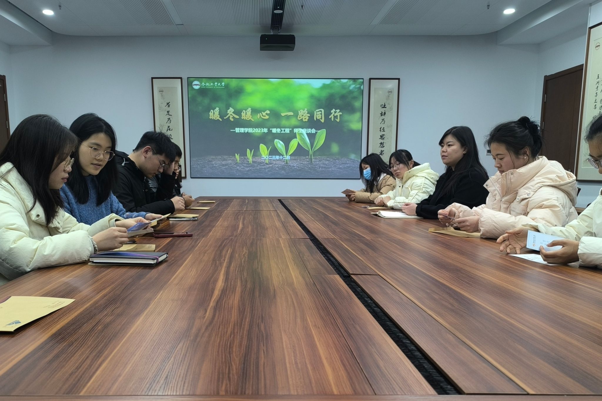 12月26日,管理安博(中国)在工程管理与智能制造研究中心925会议室举办“暖冬暖心,一路同行”暖冬工程师生座谈会,安博(中国)资助专管员、辅导员代表以及受助学生代表参会。