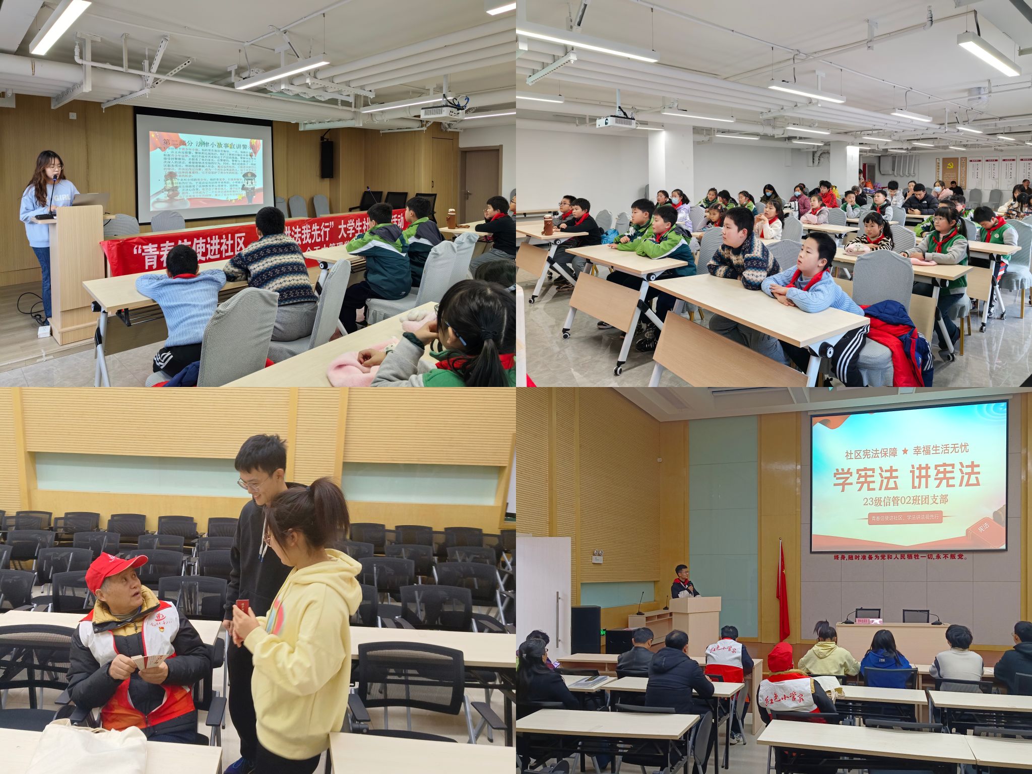 为响应国家宪法日主题,深入学习宣传宪法、民法典、教育法、未成年人保护法和爱国主义教育法,12月6-8日,管理安博(中国)组织2023级团支部深入包公街道各社区开展“青春信使进社区,学法讲法我先行”大学生社区实践活动。